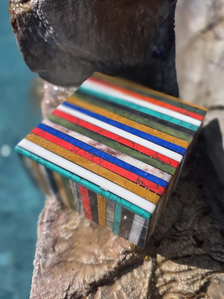 …and then there are Multi Colour Sacred Stone Treasure Box —living mosaics of Earth magic, created from multiple natural stones and carved entirely by hand by a woman artisan in Pakistan whose craft supports her whole family.