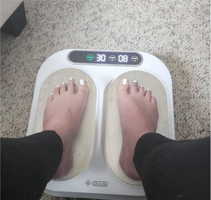 My in-home electric detox machine. A combination of PEMF and terahertz. I’ve been trained by a chronic illness expert for three years. I took the medical knowledge I learned in college, dove into research, and verified everything over and over. First in my own body. Then in clients who saw the same results.
