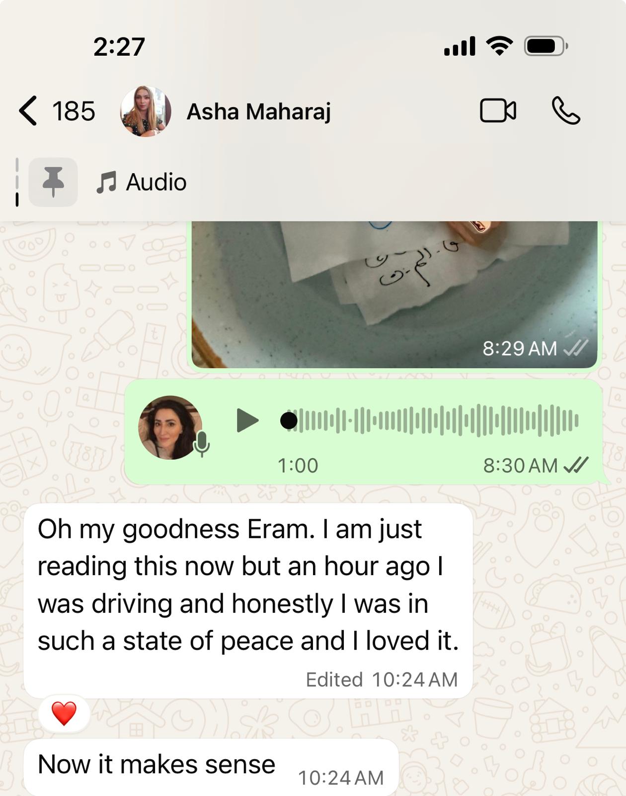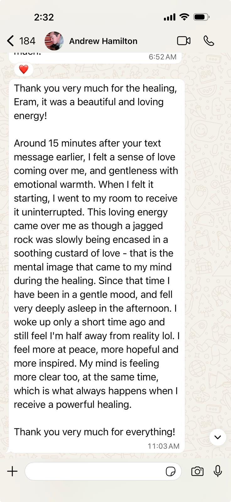 "Oh my goodness, I am just reading this now, but at that exact time when you started I was driving and honestly I was in such a state of peace. And I loved it and now it makes sense. You had just started the healing process."